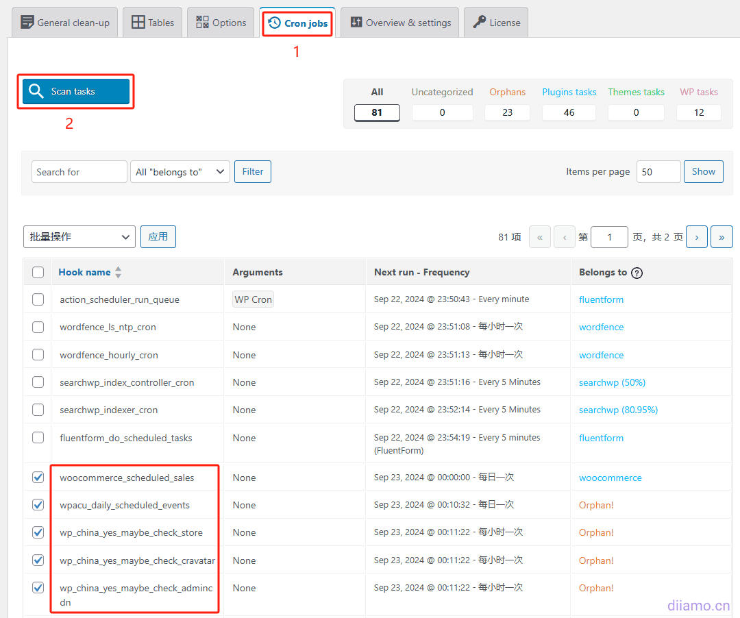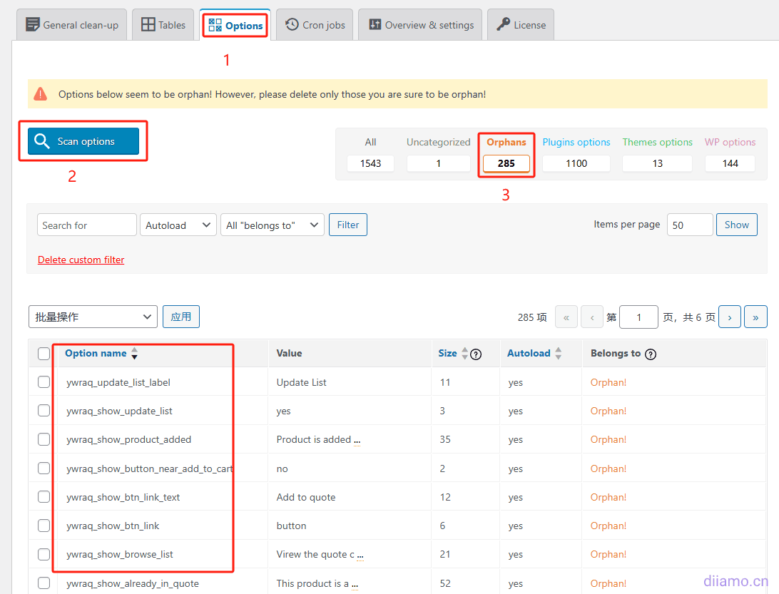 For example, the following figure after scanning prompted hundreds of isolated data ↓, isolated is not part of any plug-in / theme / wordpress core data, a high probability of safe deletion. If you have a lot of data, sometimes the scanning time is longer, wait patiently.