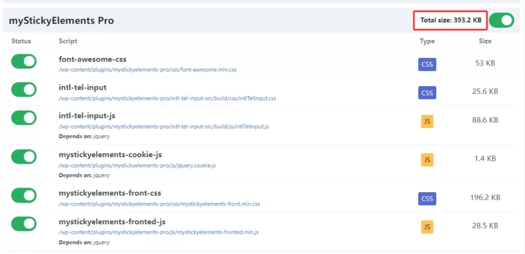 myStickyElements Pro 在前端加载393.2 kb代码↓。